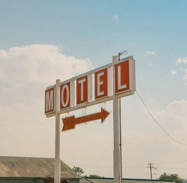 It is dismal driving into the motel area. The rooms are small and dark. There are mauve-colored chairs with the fabric-missing sitting next to some rooms. Restaurant sized empty cans serve as “water catchers” for the old air conditioners, and some of the cans serve as ashtrays.